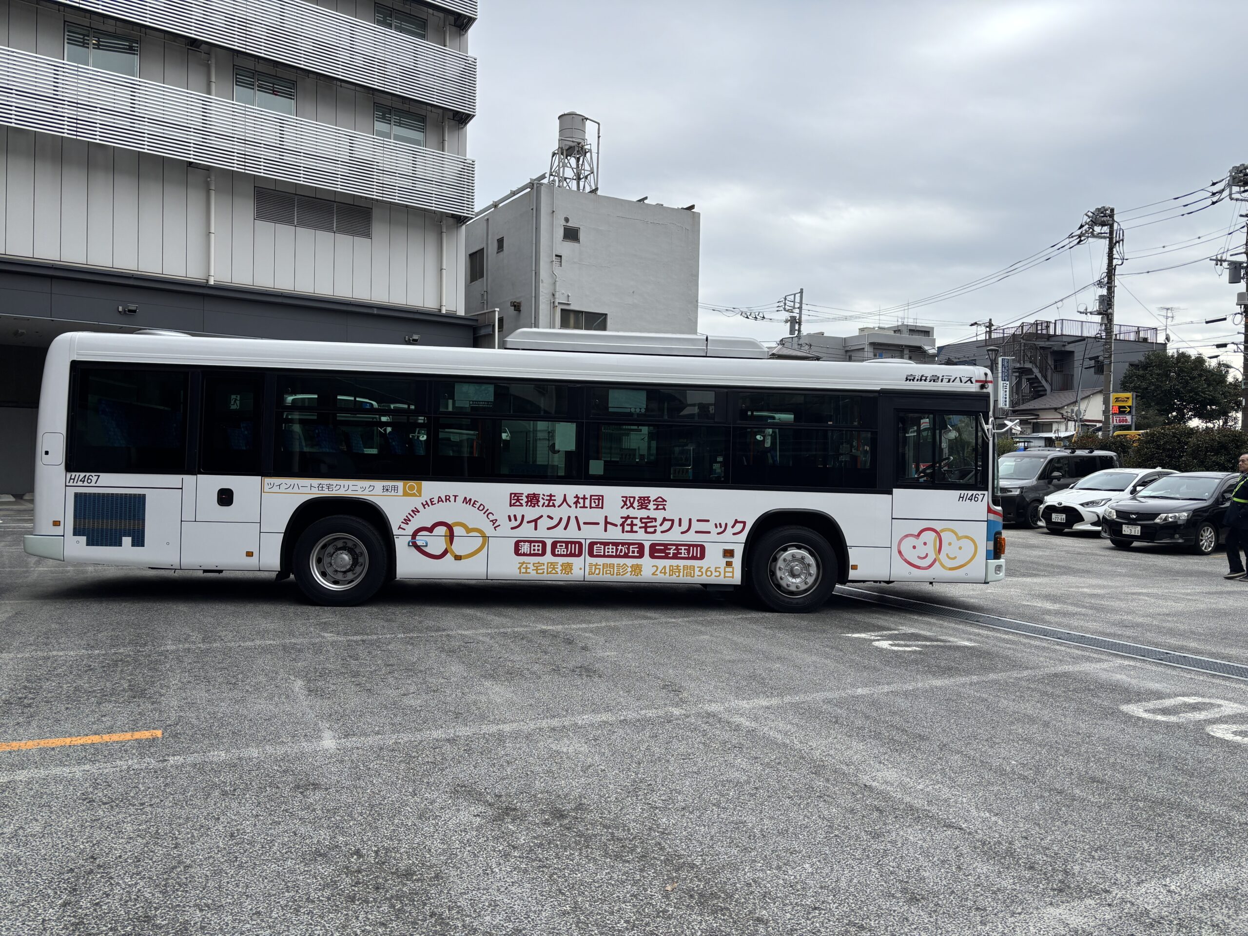 大田区・品川区を運行する京急バスに2台のバスラッピング広告をご実施いただきました! 今回はクリニック様の広告ということもあり、白色を基調とした清潔感のあるデザインを採用し、 先方のハートマークのロゴをワンポイントで配置することで、親しみやすさと視認性を両立しています。 こちらはなんと!クリニック様のご支給デザインになります。 バスラッピングは、車体全体を活用できる視覚的インパクトが非常に大きい広告です。 走行しているだけで、車を運転中や歩行者など、多くの方の目に自然と触れるため、高い訴求効果のプロモーションが可能です。